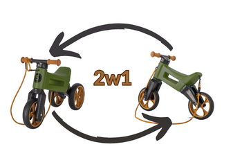 FWRider Super Sport 517481 Kolor: Khaki z brązowymi felgami Rowerek biegowy Jeździk 2w1 Ciche koła + Pasek do noszenia dla Rodzica