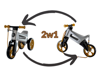 ( ilość produktów: 12 )FWRider Super Sport 517498 Kolor: Grey / Szary z brązowymi felgami Rowerek biegowy Jeździk 2w1 Ciche koła + Pasek do noszenia dla Rodzica